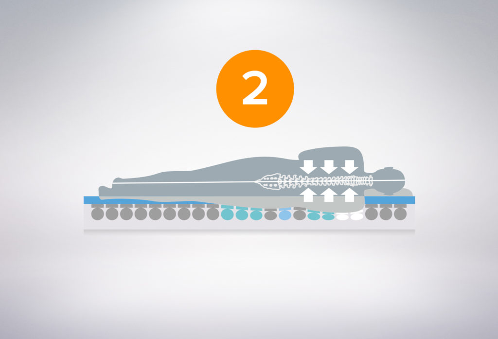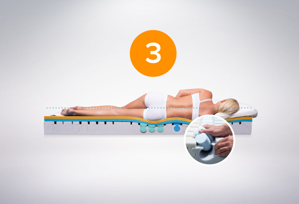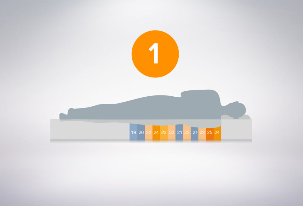 Die Matratze nach Maß entlastet Ihren Rücken durch 24 individuell angepasste Zonen. Für erholsamen Schlaf ohne Unterbrechungen.